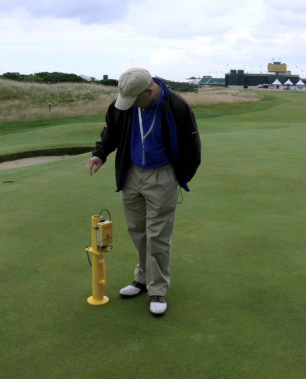 The sports pitch or golf fairway hardness is easily measured and the results displayed and stored are useful predictors of ball bounce and roll during play. Variations in strength of the fairways may be due to construction processes such as compaction and stabilisation, environmental effects such as moisture content changes and also to compaction differences caused by a particular usage in a specific location. The Tester provides a quick and accurate method for monitoring variations in strength and for helping to determine the uniformity of an area. An example of its simplest application is to help determine soft spots or hard areas.