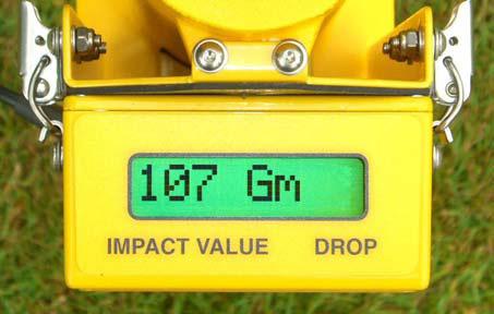 The stiffness - or ‘hardness’ of the surface as related to ball bounce and roll can be quickly established and it is easy to monitor stiffness changes due to moisture changes, grass growth and wear throughout playing seasons. Typically, readings less than 75 indicate a soft surface and those around 100 indicate a well controlled surface for excellent ball striking and accurate play. The test data is recorded in the instrument and it is downloadable to a computer wirelessly by Bluetooth.